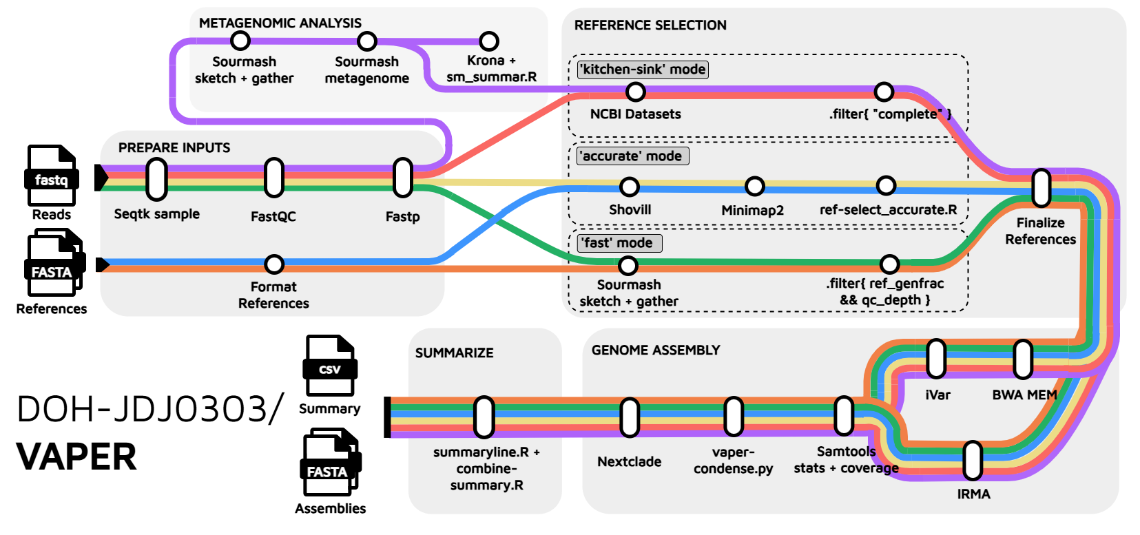 VAPER was originally created by the Washington State Department of Health (WA DOH) as part of the Pathogen Genomics Center of Excellence (PGCoE). Check out the links below to learn more: