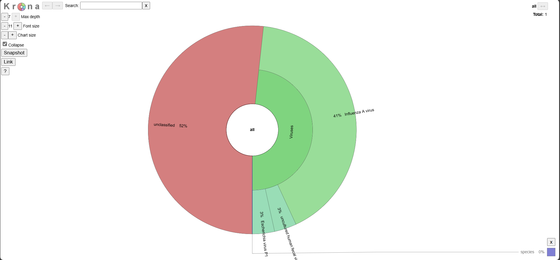 Below are examples of the metagenomic output for a Twist Bioscience synthetic RNA control for Influenza A H1N1.